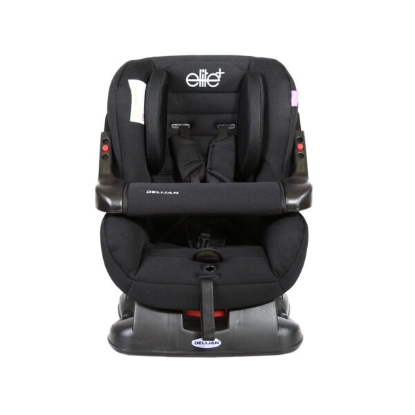 صندلی خودرو دلیجان مدل «Elite Plus»، دارای کمربند ایمنی پنج نقطهای است. این صندلی دارای گارد محافظ جلو و گارد قابل تنظیم و فیکسشدن در سه حالت گوناگون است. صندلی خودرو دلیجان قابل نصب روبه عقب مناسب برای نوزادان تا وزن ۱۳ کیلوگرم و قابل نصب روبه جلو مناسب برای کودکان بهوزن ۹ تا ۱۸ کیلوگرم است. قسمت نشیمنگاه این صندلی خودرو بسیار راحت است. از دیگر ویژگیهای این صندلی قابل شستوشو بودن آن تنظیم حالت پشتی آن در سه حالت و داشتن گواهی تستتصادف است.