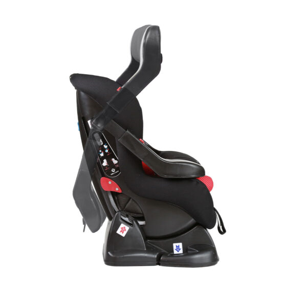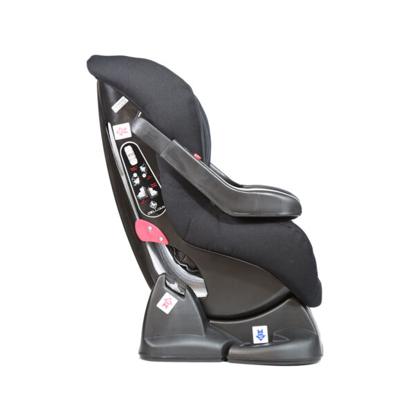 دارای کمربند ایمنی پنج نقطهای، گارد محافظ جلو، حالت پشتی و گارد قابل تنظیم
