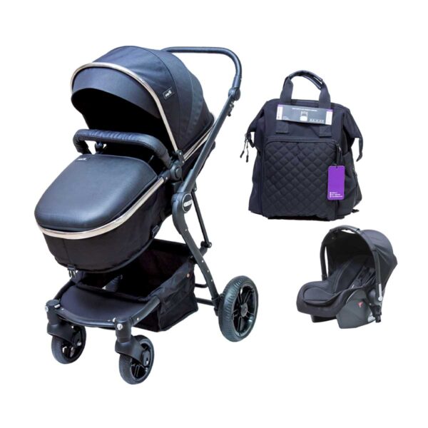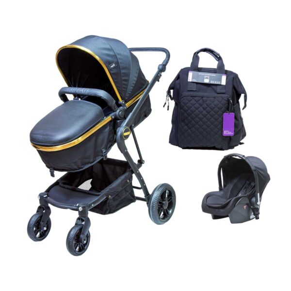 پشتی نشیمنگاه آن قابل تنظیم در سه حالت مختلف نشسته، نیمه خوابیده و خواب برای نوزادان عزیز است. تشک و رویهی کالسکه جنس نرم و متناسب با پوست لطیف کودک دارد.