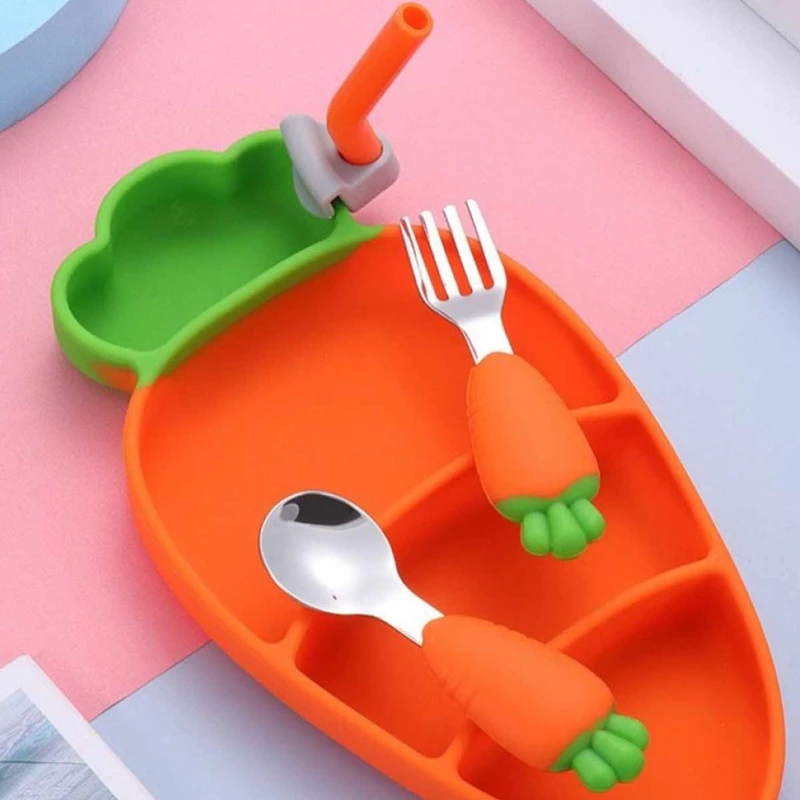 دارای قاشق و چنگال استیل با طراحی خاص مناسب دهان کودک