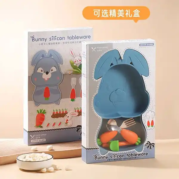 ست ظرف غذا کودک تمام سیلیکون طرح خرگوش
