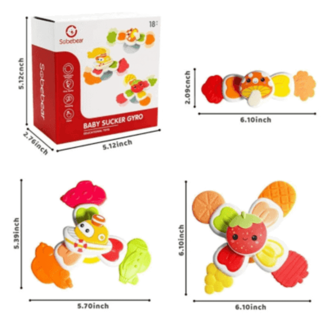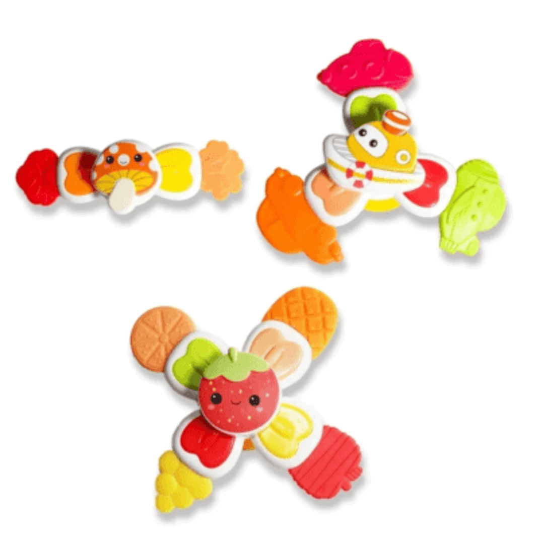 هر اسباببازی یک اسپینر کودکانه است که روی یک مکنده قرار دارد و تعداد پرههای آن متفاوت است.