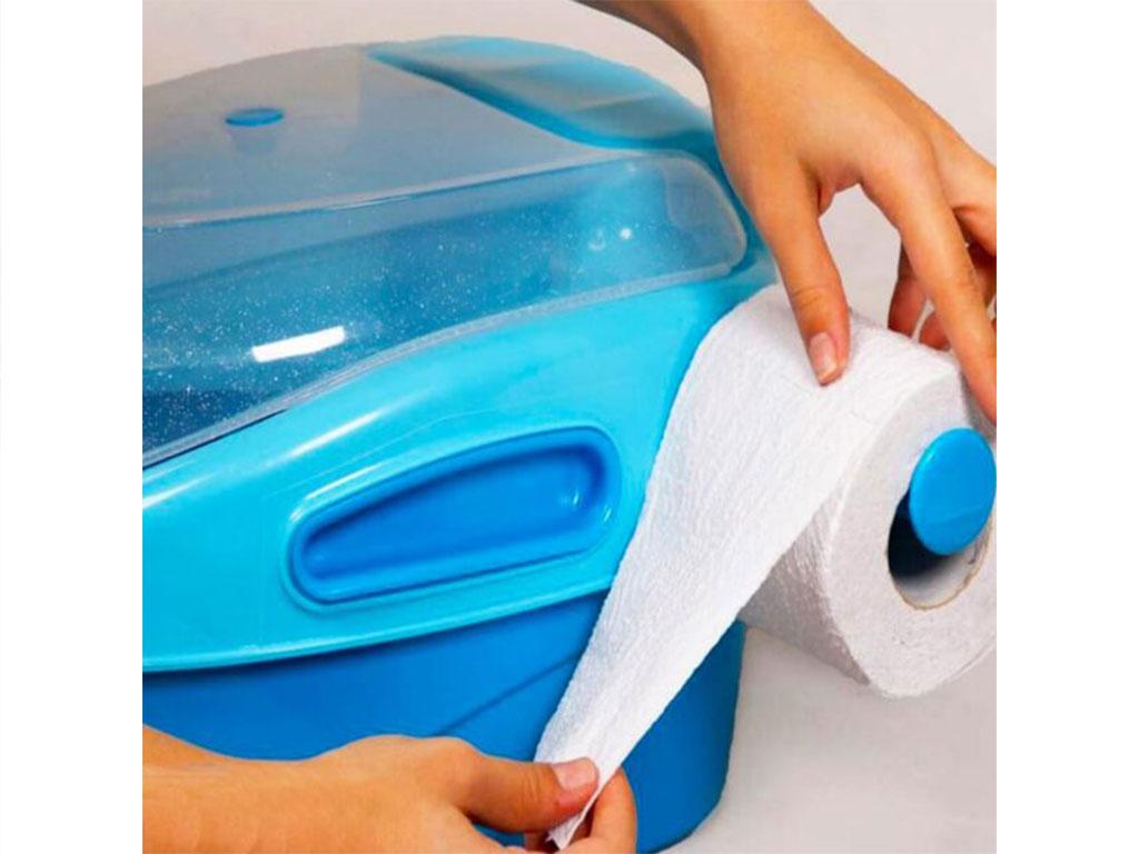 شما می توانید توالت آموزشی را به همین شکل در دستشویی بگذارید و بعد از باز کردن درب آن کودک می تواند به راحتی از آن استفاده نماید. میله محل قرار گیری دستمال توالت را بکشید و دستمال توالت را برای استفاده راحت کودک بر روی آن قرار دهید.