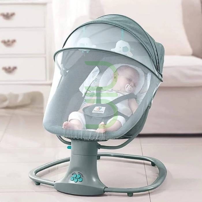 تاب و گهواره برقی 3 کاره ماستلا Mastela قابل استفاده به عنوان تاب و گهواره از بدو تولد تا 1 سالگی و صندلی تا 3 سالگی می باشد. پشتی یا تکیه گاه صندلی قابل تنظیم است. قابلیت کنترل از راه دور توسط ریموت کنترل را داراست. قابلیت حرکت به چپ و راست در پنج سرعت مختلف آرامش بخش را دارد. تنطیم تایمر در بازه زمانی ۱۵،۲۰،۴۵ دقیقهای با توجه به الگو خواب نوزاد را داراست. پخش موزیک از طریق بلوتوث و یا فلش که البته خود تاب چندین موزیک بی کلام و آرامش بخش را نیز در حافظه خود دارد.